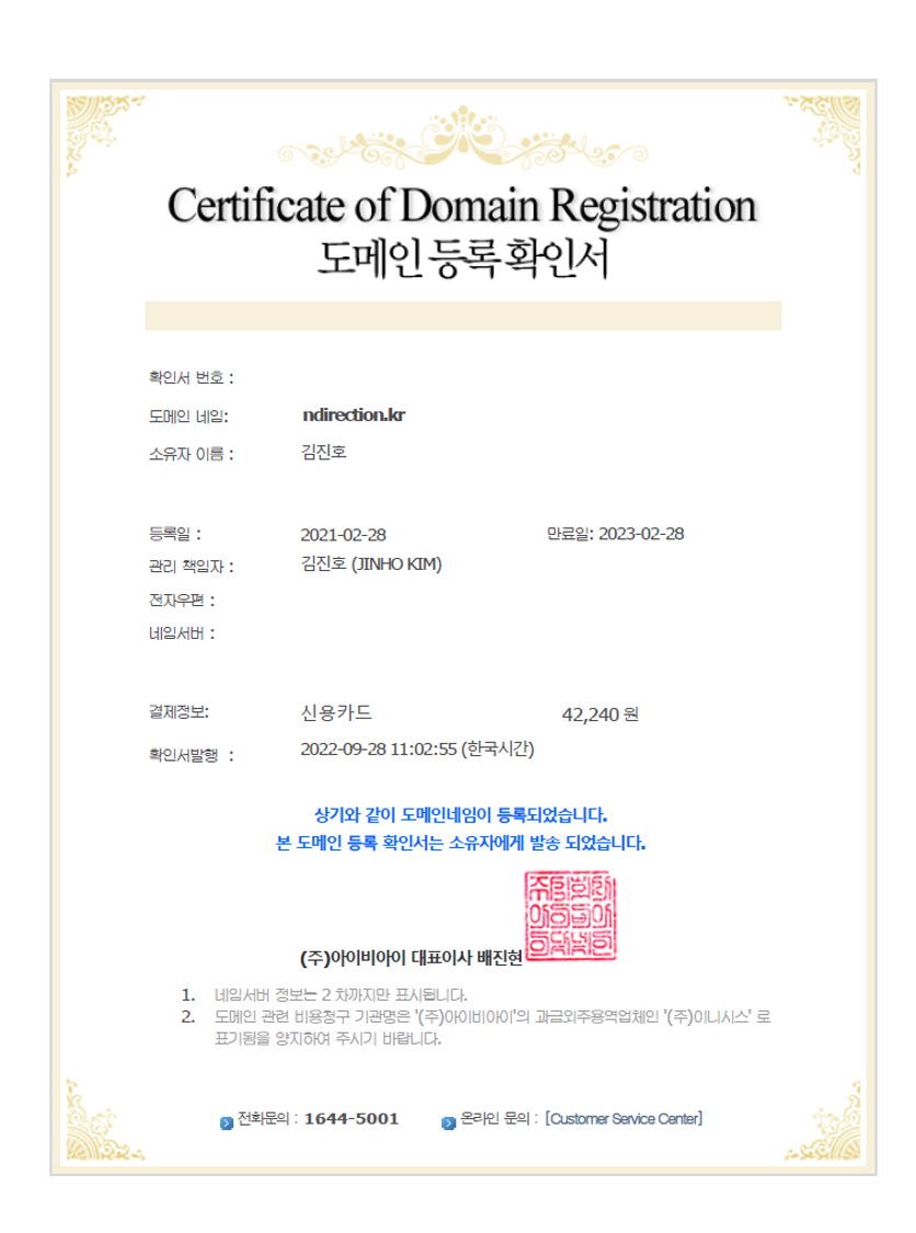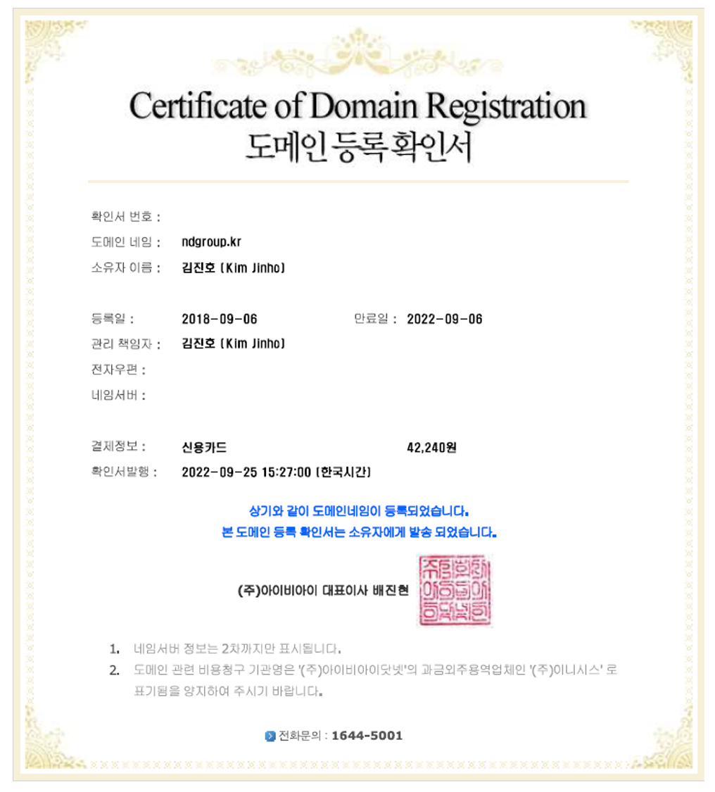 Certificate of Domain Registration for ndgroup.kr