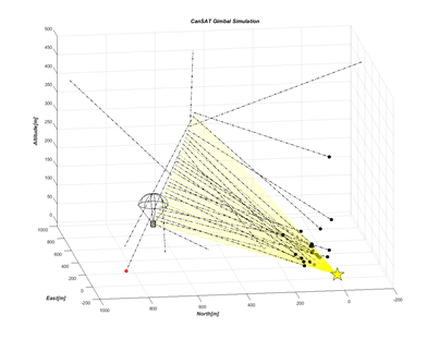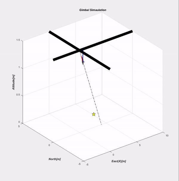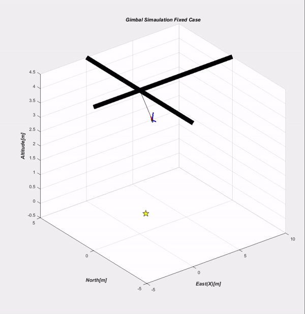 This shows an actuating gimbal by using a 3-1-3 system. Later, I changed a gimbal algorithm from the 3-1-3 system to an Azimuth-Elevation system.